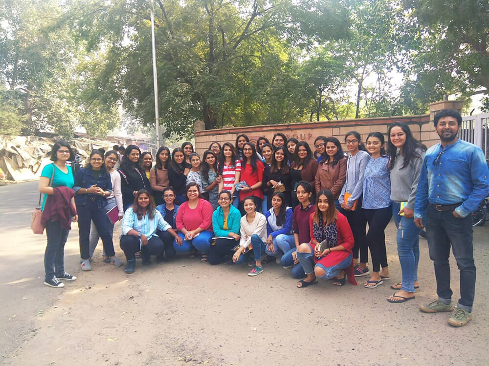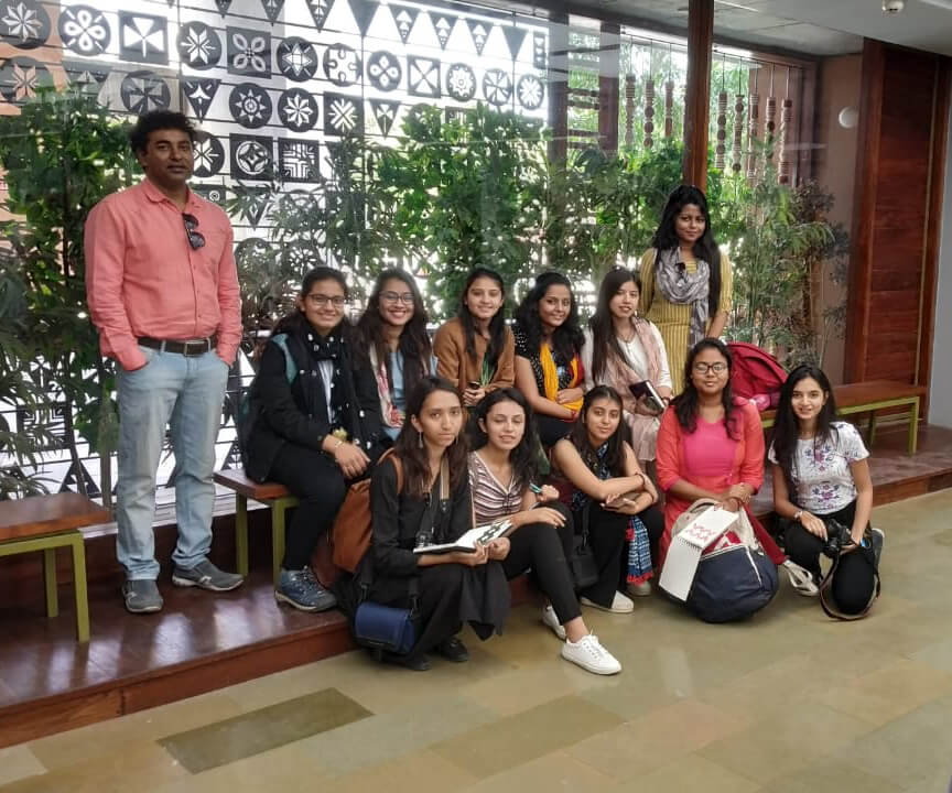 Under the Subject named 'Design Project II', students are taken for the craft visit at various places where this year it was Kutch, Gujarat. Learning & knowledge about various crafts & textiles of Gujarat like Rogan art, Ajrak block printing, Bandhani & Leheriya, Leather products takes place. Students have a hands-on experience and a thorough understanding of all the crafts. The visit is as long as a week i.e. 6-7 days including travelling to-fro.